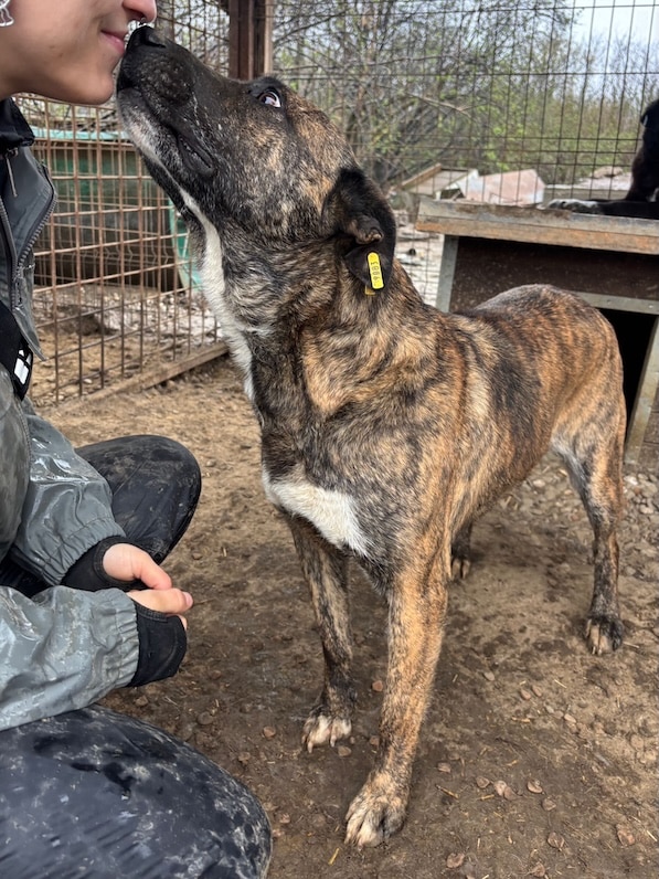 ZAHAR begrüßte uns schon am Gitter als wir noch im Nachbarkennel waren. Als wir dann in ihren Kennel gingen, war die Freude riesig. Sie hüpfte und wuselte um uns herum. Gerne nahm sie unsere Leckerchen aus der Hand. Man merkt ihr an, dass ihr Besuche von Menschen zu ungewohnt sind und sie gerne mehr Kontakt gehabt hätte. Leider fehlte uns hierfür die Zeit. In einer anderen Umgebung sollte dieser letzte Schritt des fehlenden Vertrauens bald überwunden sein.