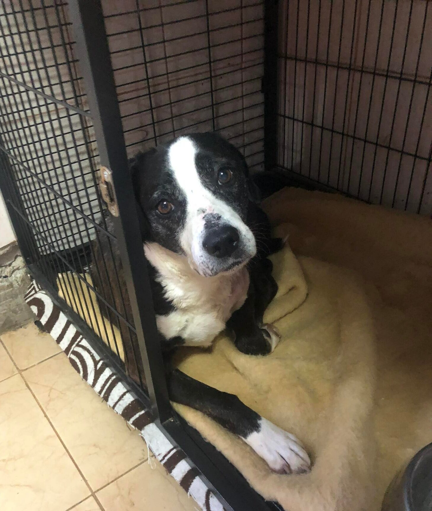 Bei einem unglücklichen Sprung hat sich ZAZA das linke Vorderbein gebrochen. Sie wurde operiert und saß 10 Tage lang in einer Klinik. Nun ist sie zurück im Shelter, kann das Bein aber noch nicht nutzen. Es ist bisher unklar, ob es wieder (voll) belastbar wird.